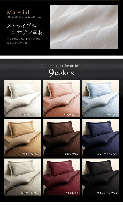 レビューの書き方についてはこちら -商品情報- 寝室の雰囲気をグッと引き立てる、高級感のあるストライプサテン素材を使用した寝具カバーです。