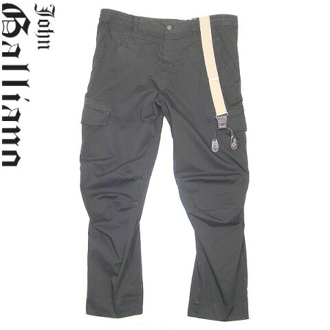 ジョンガリアーノ JOHN GALLIANO メンズ パンツ ボトムス ロゴ サスペンダー装飾付き七分丈クロップドパンツ ブラック 4R1145 72900 12S (R49800)【送料無料】【smtb-TK】