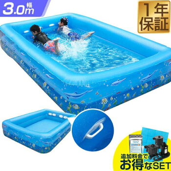 【楽天1位】プール 大型 3m ハンドル 付き ビニールプール ファミリープール 3.0m 幅 300cm x 奥行き 180cm x 高さ 45cm 庭 ベランダ 除菌剤 消毒 電動ポンプ 空気入れ バタ足 練習 水泳 水あそび キッズプール 家庭用プール 子供用プール 1年保証 ★[送料無料]