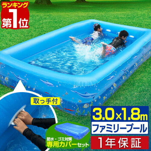 【楽天1位】プール 大型 3m ハンドル & プールカバー 付き ビニールプール ファミリープール 3.0m 幅 300cm x 奥行き 180cm x 高さ 45cm 庭 ベランダ 電動ポンプ 空気入れ バタ足 練習 スイミング 水泳 水あそび レジャー 家庭用プール 1年保証 ■[送料無料]