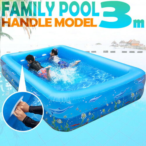 プール 大型 3m ハンドル 付き ビニールプール ファミリープール 3.0m 幅 300cm x 奥行き 180cm x 高さ 45cm 庭 ベランダ 除菌剤 消毒 電動ポンプ 空気入れ バタ足 練習 スイミング 水泳 水あそび 家庭用プール 子供用プール 1年保証 ●[送料無料]