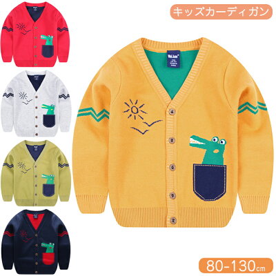 送料無料 子供服 男の子 春 秋 冬 アウター トップス お洒落 キッズ 服 男の子 カーディガン 120 男の子 キッズ 秋 学生 かっこいい 子ども服 韓国 恐龍柄 ボタン付け Vネック 可愛い お誕生日 プレゼント 紺 ネイビー 80 90 100 110 120cm