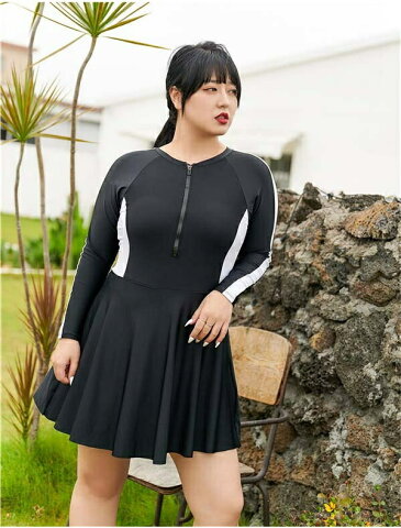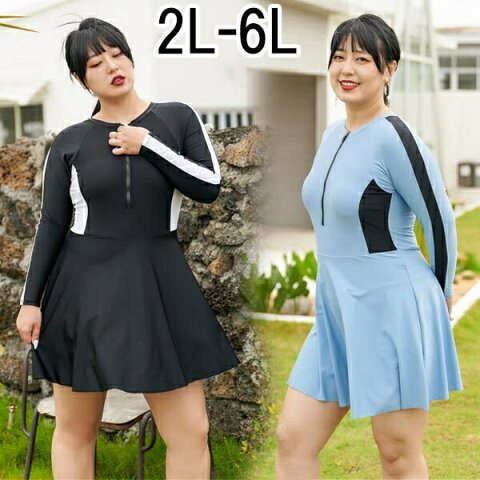 オールインワン ワンピース フィットネス水着 セパレート水着 ぽっちゃり水着 レディース 水着 体型カバー 大きいサイズ ぽっちゃり 長袖 海 沖縄 温泉 競泳 大人 可愛い 韓国風 着痩せ 女性用 水着新作 2L 3L 4L 5L 6L ブルー ブラック