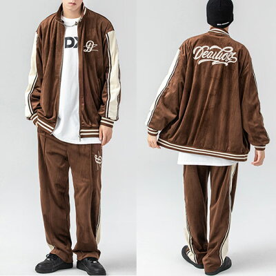 セットアップ メンズ ベロア スウェット 上下セット ルームウェア ライン バイカラー 部屋着 オシャレ ストリート系 セットアップ 上下セット ジョガーパンツ 2021 春 秋 冬 新作 個性的 ホスト ビター系 BITTER系 ストリート系 ジャージ 衣装 オラオラ系 セットアップ 上下