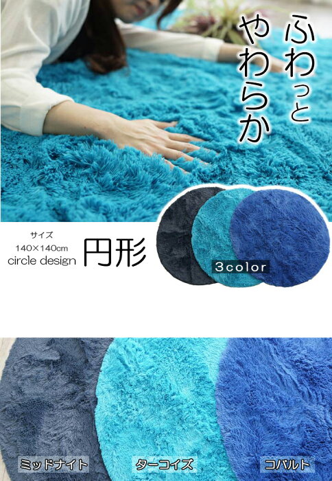 ラグマット 洗える ラグ 円形 ブルー 直径 190 丸 毛足35ミリ じゅうたん 超 ロング シャギーラグ 円型 送料無料 カーペット ホットカーペットカバー 絨毯 洗濯可 ムートン 調 夏用 にも