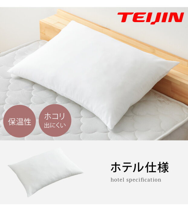 「頸椎安定型/ホテル仕様」・サイズ:側生地43cm×側生地63cm・重量: 約400g・側生地: ポリエステル100%・中綿 :ポリエステル100%(帝人TL-2綿使用)・側生地:中国製・製品加工:日本製※最終製品加工などはすべて日本製となります。