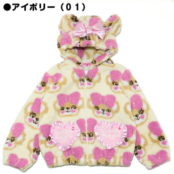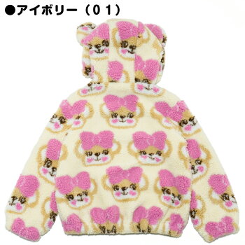 【EARTHMAGIC正規取扱店】アースマジック 2021秋冬 スタッフトマフィーボア総柄 クマ耳フードジップアップブルゾン 女児 女の子 子供服 キッズ アウター 100-140cm アイボリー ペールピンク