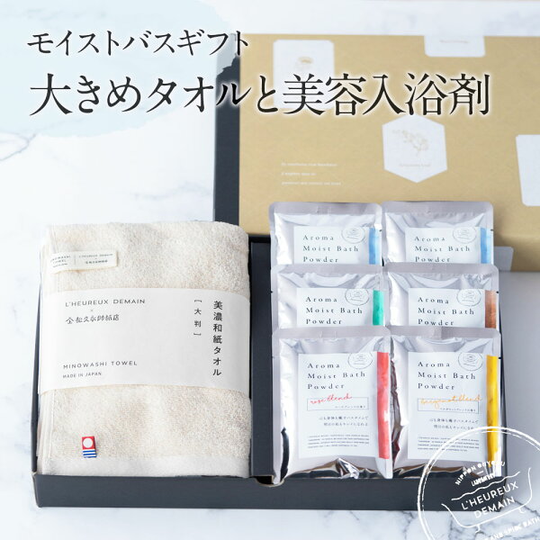 【商品名】 ディマン × ディマン 大きめタオルと美容入浴剤 Towel bath gift タオル 入浴剤 ※入浴用化粧品 【内 容】 ・美濃和紙タオル 大判 アイボリー 1枚 ・Aroma Moist Bath Powder アロマモイストバスパウダー:5種 計6袋(1袋×80g) ヨーロッパアカマツの香り:1袋、ベルガモットブレンドの香り:1袋 ローズブレンドの香り:1袋、ベチバーの香り:1袋 無香料:2袋 【詳細】 ・サイズ:たて225mm×よこ338mm×高さ45mm ・重量:834g ※おおよその目安となりますので、多少の誤差はご了承ください。